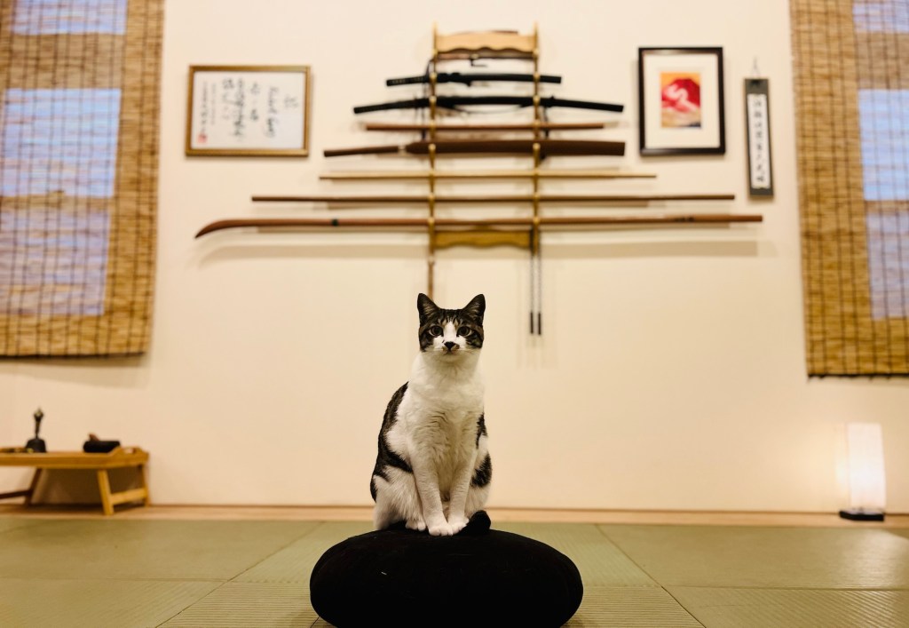 This site brings together my work in Japanese translation, writing, meditation, and traditional kobudo martial arts. Enjoy having a look around… all under the watchful eye of Luna, the dojo cat, who has mastered the art of being present.